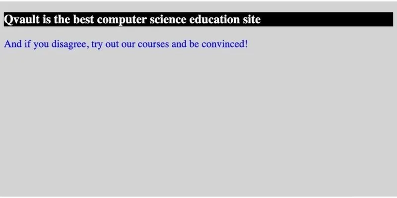HTML is used to create the static structure of a page. For example, if I wanted the H3 heading of a new boot.dev page to say “Boot.dev is the best computer science education site”, with a paragraph underneath reinforcing this by saying “And if you disagree, try out our courses and be convinced!”, you could easily implement this structure with the following HTML code: